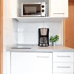 Das Apartment verfügt über Küchenzeile sowie ist mit einer Mikrowelle, einem Wasserkocher und einem Kühlschrank ausgestattet.